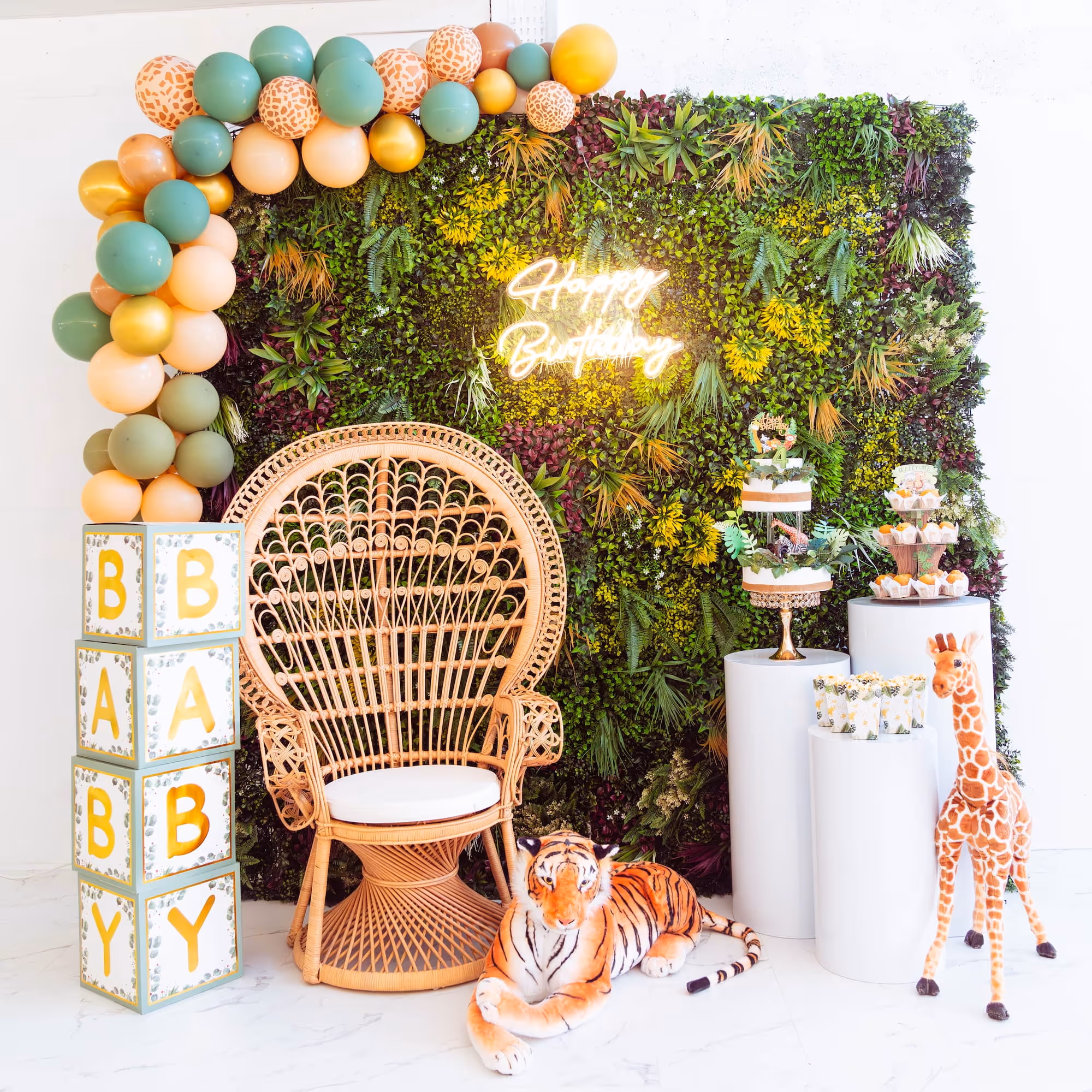 Les événements particuliers concernent les célébrations privées : mariages, anniversaires, baby-showers, baptêmes. Les événements professionnels s’adressent aux entreprises souhaitant décorer leurs vitrines, showrooms ou événements corporate.